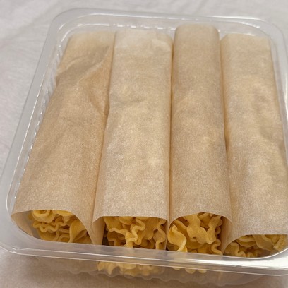 Паста mafaldine доставляется в состоянии шоковой заморозки. Срок хранения — 120 дней при t -18°C. Вакуумная упаковка позволяет хранить пасту длительное время без потери качества.