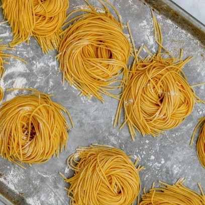Spaghetti alla chitarra - это длинные тонкие полоски теста квадратного сечения ▢ 2 мм и длиной 25-30 см